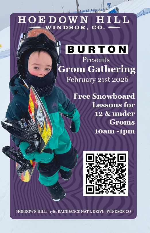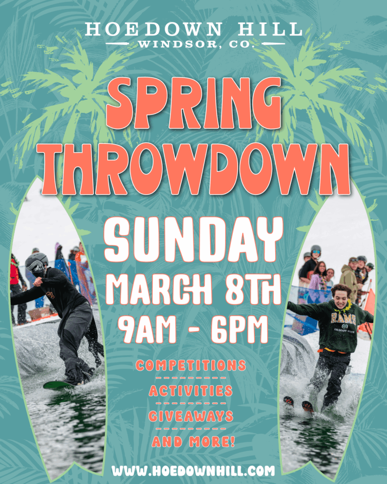 Not every snowy adventure needs a two-hour drive and a packed lift line. Hoedown Hill brings the best parts of Colorado winter right to Windsor; terrain parks, Ski School, tubing, day and night skiing/snowboarding sessions. It’s where beginners find their footing, park riders push their limits, and families discover a new winter tradition close to home. Built by locals, for locals, this hill is small on purpose, because it means more runs, more progression, and more time to ride.