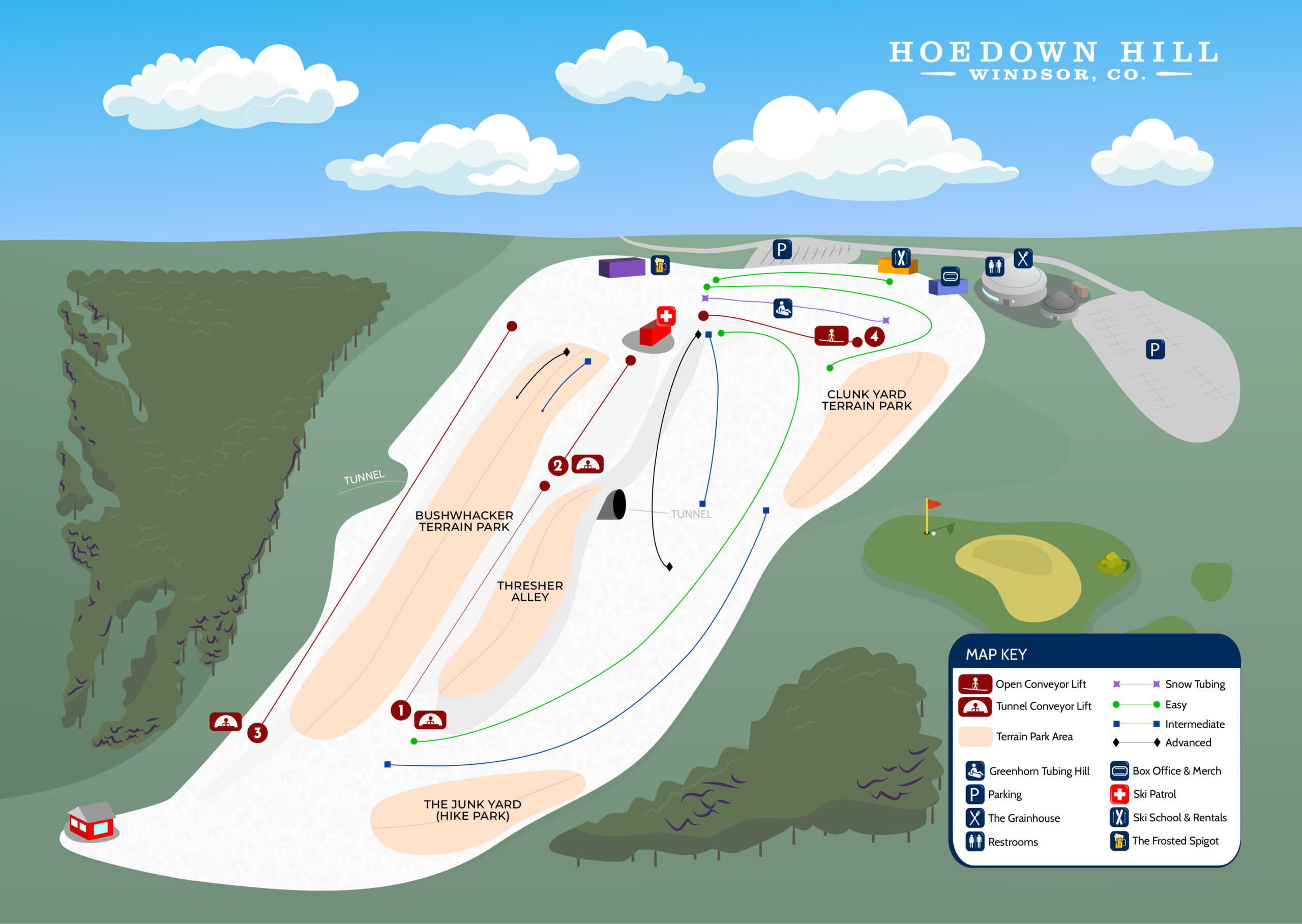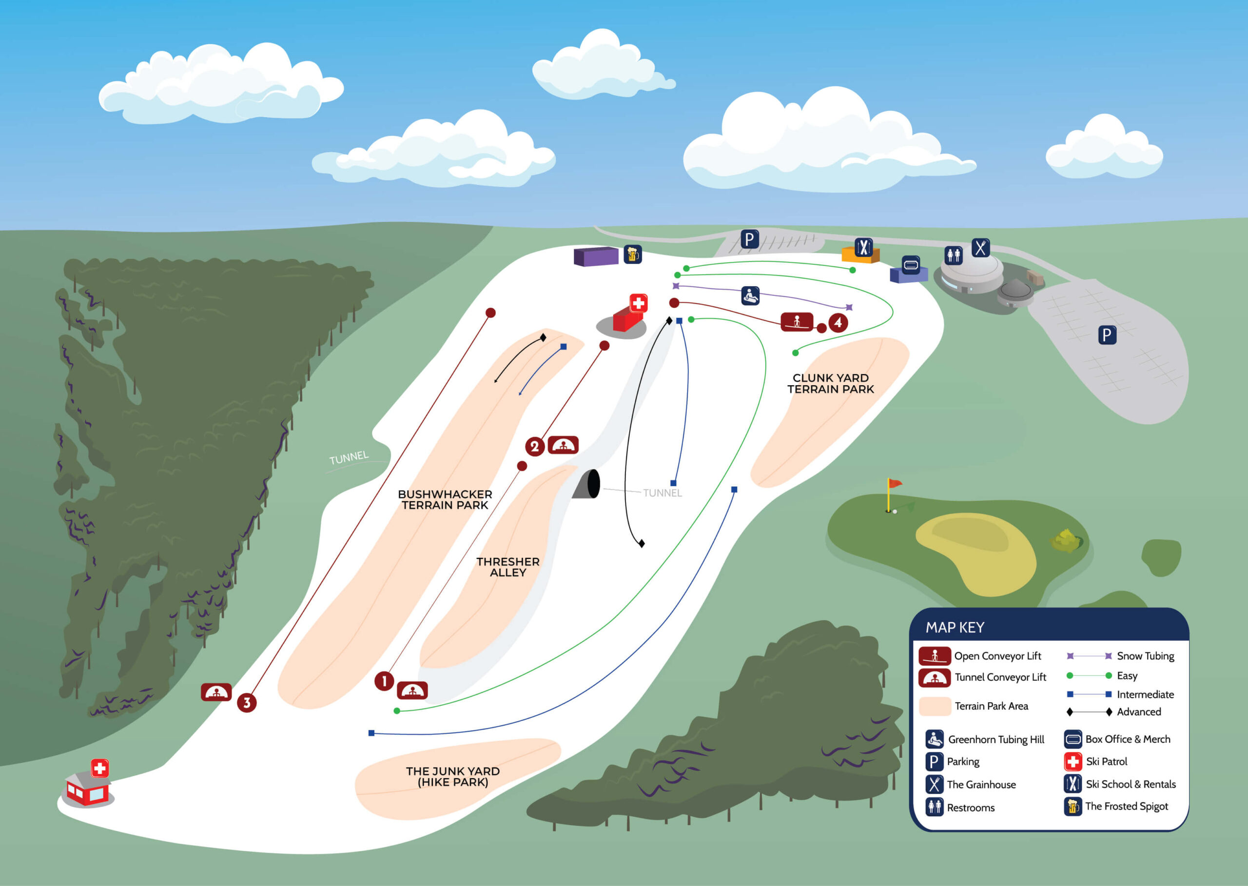 Due to weather conditions, terrain parks and tubing will be UNAVAILABLE, but are coming soon!